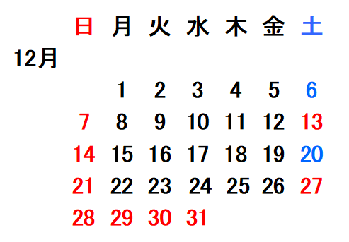年末は26日(金)まで、年始は5日(月)から営業いたします。